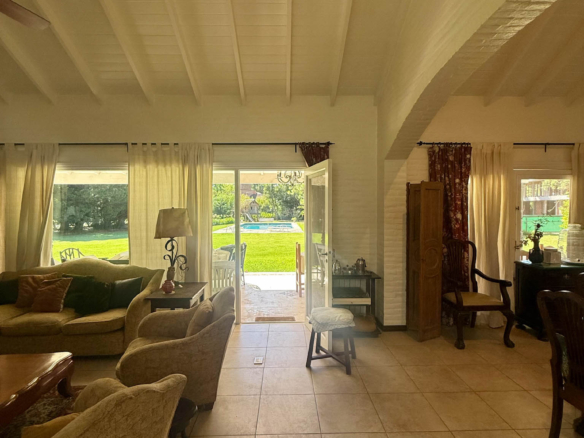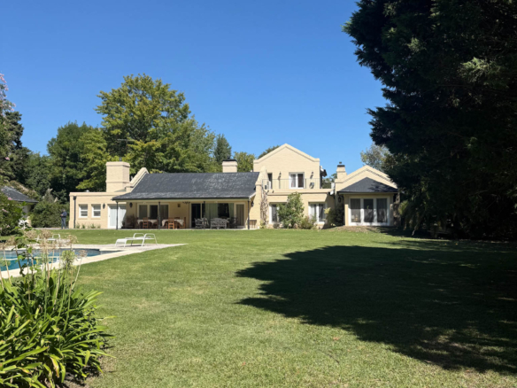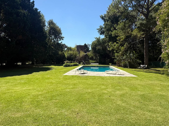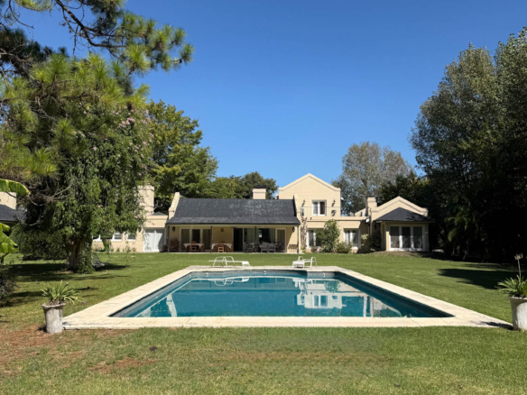 Desarrollada sobre tres lotes de 1.500 m² cada uno, esta propiedad ofrece luminosidad, privacidad y un entorno verde realmente excepcional! Con vistas abiertas al parque y una excelente conexión entre interior y exterior, la casa se destaca por su amplitud y funcionalidad. En planta baja cuenta con un amplio living-comedor con frente al jardín, cocina con desayunador, tres suites completas y tres dormitorios con placard que comparten baño! La master suite principal tiene vistas al hermoso parque mientras las otras dos dan a la calle (Propiedad sobre esquina). En planta baja, la propiedad también dispone de un toilette de recepción, escritorio y lavadero con dependencia de servicio.