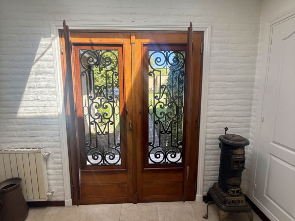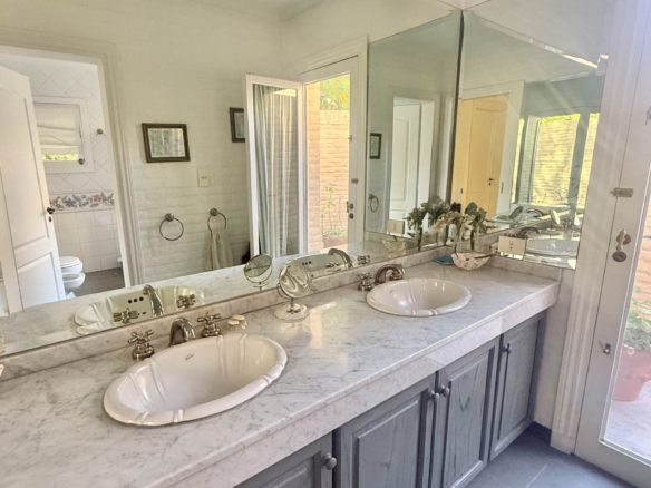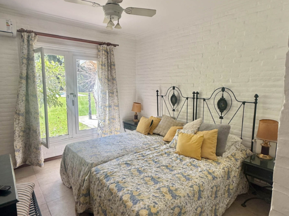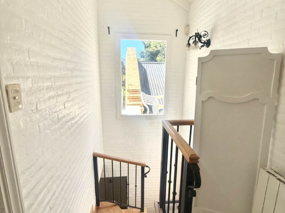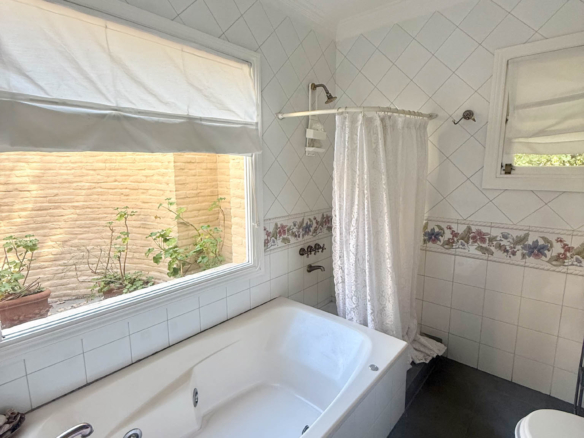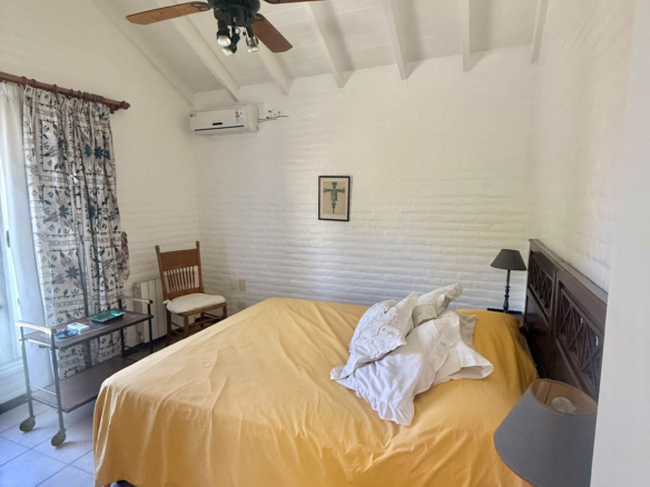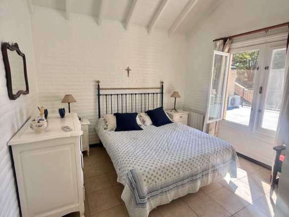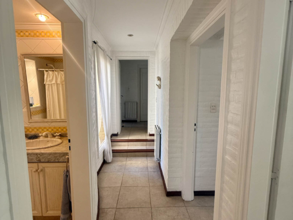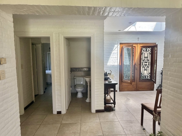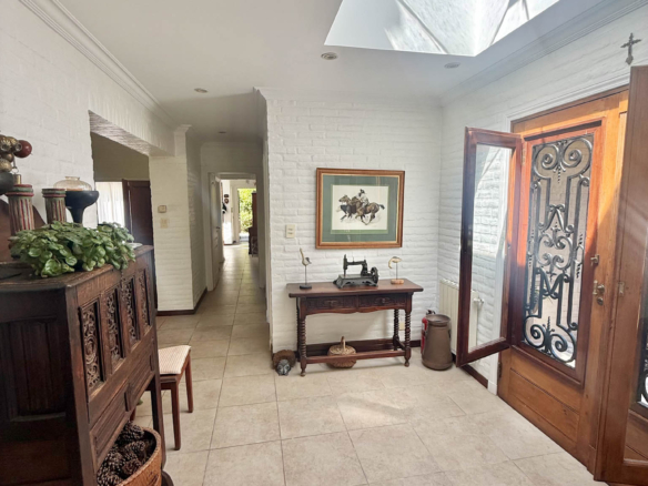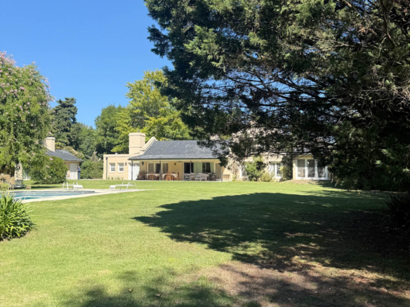 En planta alta se desarrollan dos dormitorios más, uno orientado al frente y otro al jardín, que comparten un baño completo. La propiedad se complementa con climatización por splits frío/calor en sus ambientes y un exterior pensado para disfrutar al máximo: un gran parque arbolado, piscina y cancha de tenis. Además, cuenta con un quincho de grandes dimensiones totalmente equipado, con parrilla, sauna, vestuarios, baño y ducha escocesa! Una propuesta única por dimensiones, luminosidad y entorno, pensada para vivir con total confort y privacidad.