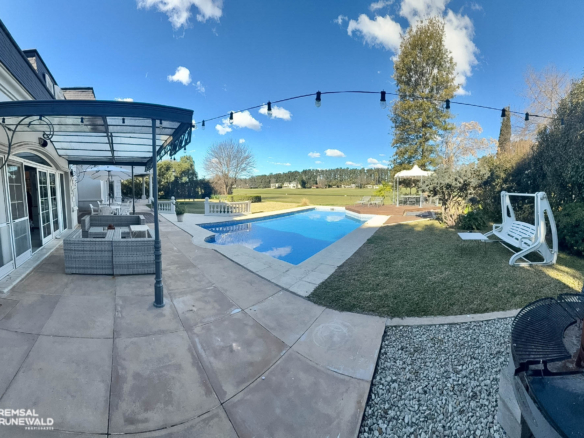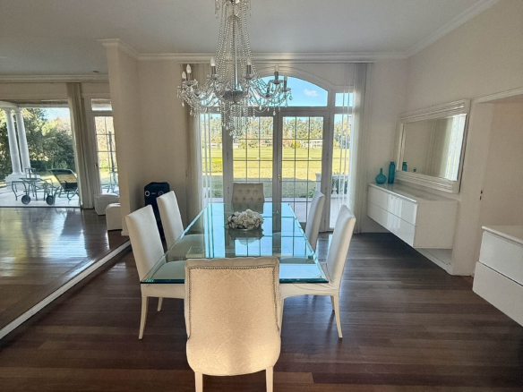 Esta propiedad de dos plantas se encuentra ubicada en una de las zonas más exclusivas del Country, justo frente al Polo, y se destaca por su diseño arquitectónico de estilo francés.