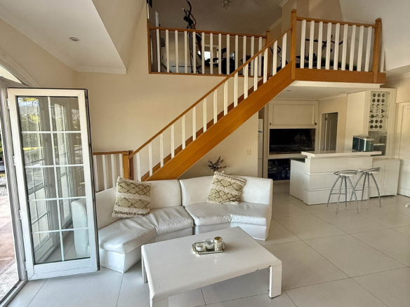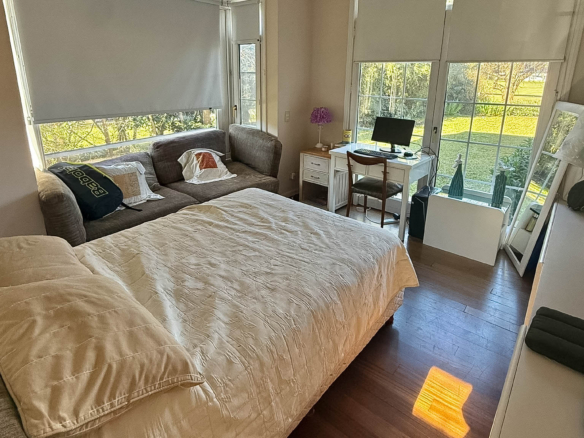 En la planta alta se desarrolla la master suite principal, que cuenta con un gran doble vestidor, baño con jacuzzi y doble bacha. Además, la propiedad cuenta con dos dormitorios, uno de ellos en suite.