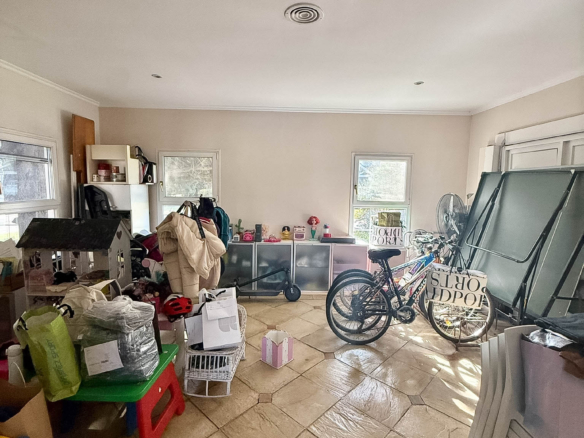 El exterior ofrece una amplia galería con vista al jardín, un quincho totalmente integrado con parrilla y un entrepiso versátil. La propiedad también cuenta con un área de servicio completa, que incluye dependencia, lavadero y baño externo, así como una cochera cubierta con capacidad para cuatro autos.