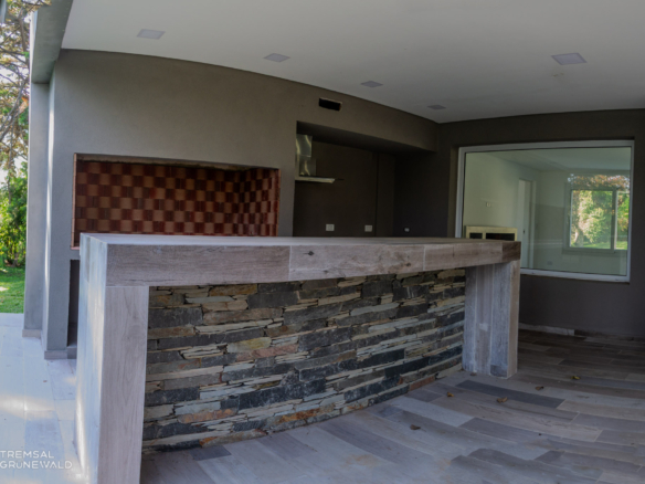 En el exterior se encuentra una galería techada que se complementa con una gran barra y parrilla.