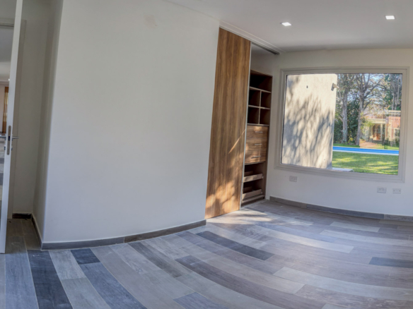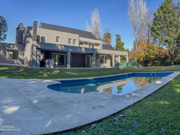 Propiedad de 350m2 con un lote de 1500m2. Se desarrolla en dos plantas, con ambientes bien distribuidos y luminosos. En planta baja se encuentra una cocina – comedor con excelente ingreso de luz natural, conectada a un sector interno amplio que funciona como living con hogar, brindando un espacio cálido y cómodo para uso diario. En este mismo nivel, se ubica un dormitorio con un gran ventanal que ofrece vistas abiertas tanto al frente de la casa como al parque posterior.