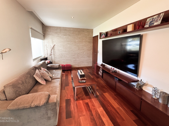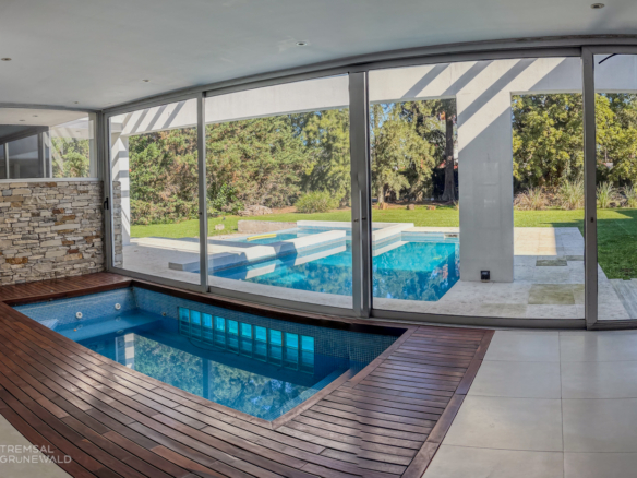 El amplio quincho con parrilla ofrece un espacio social excelente, mientras que la piscina cubierta y la piscina exterior revestida en venecita, con solárium y jacuzzi, invitan a disfrutar del exterior en todo momento.