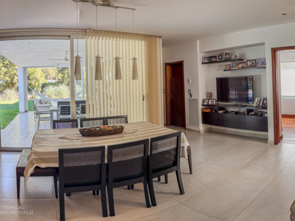 El acceso principal nos lleva a un luminoso living-comedor con hogar, desde donde se accede a una cocina con desayunador integrada al comedor diario, y una salida directa a la galería con vistas al jardín. La propiedad dispone de 4 dormitorios, siendo el principal en suite con un gran vestidor y un baño de diseño exclusivo, un dormitorio más en suite y dos dormitorios en semisuite. Además, incluye un multiespacio de quincho, pileta cubierta / descubierta, sector de gimnasio, un sector de parrilla exterior, un atelier en planta baja, un escritorio, sector de servicio y un garage para 2 autos.